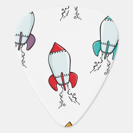 Image Of Cartoon Rocket Ship Pattern Guitar Pick
