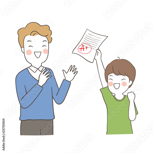 Image Of Draw Teacher Clapping To Happy Boy Holding Good Result Buy