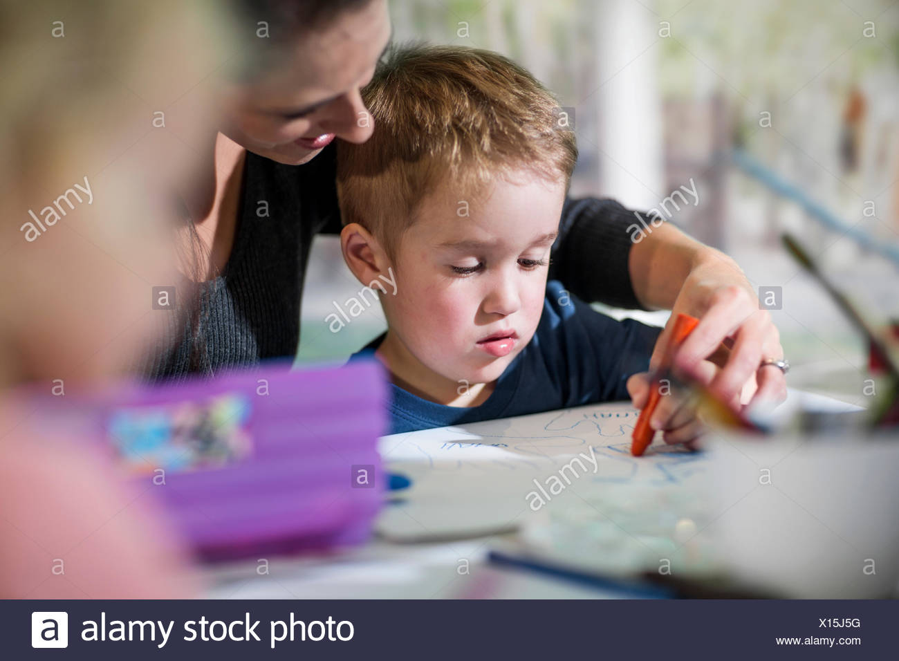 Image Of Teacher Teaching Boy To Draw Stock Photo 160176117 Alamy