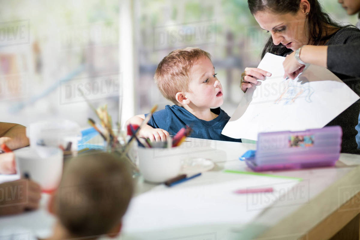 Image Of Teacher Teaching Boy To Draw D25 141 059