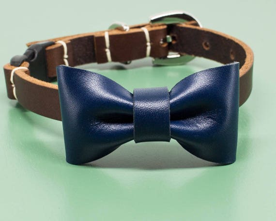 Image Of Leather Cat Collar Bowtie Navy Bow Tie Cat Collars Personalized Id Custom Engrave Breakaway Shinylake