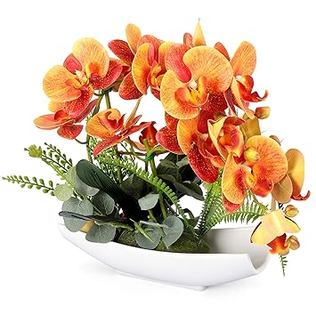 Image Of Yobansa Orchid Bonsai Artificial Flowers With Imitation Porcelain Flower Pots Phalaenopsis Fake Flowers Arrangements For Home Decoration Orange