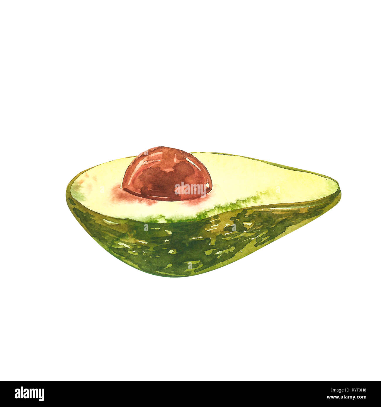 Image Of Avocado Watercolor Hand Draw Illustration Isolated On White