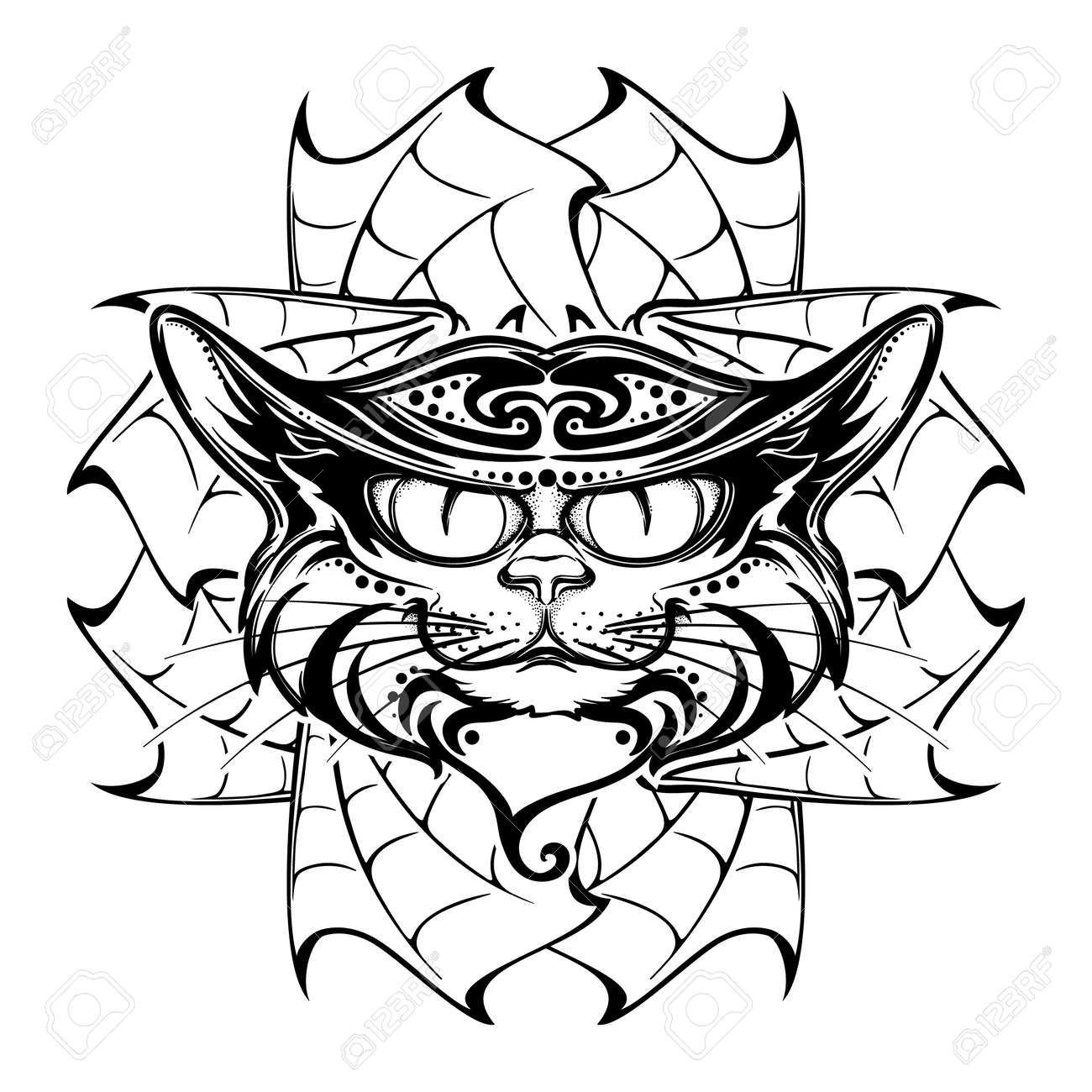 Image Of Halloween Illustration With Black Cat Head On Circular Ornament