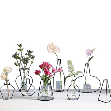 Image Of Zonyeo Minimalist Metal Vase Black Line Abstract Geometric Frame 2d Drawing Cartoon Comic Display Rack Centerpieces Decor For Faux Real Flower