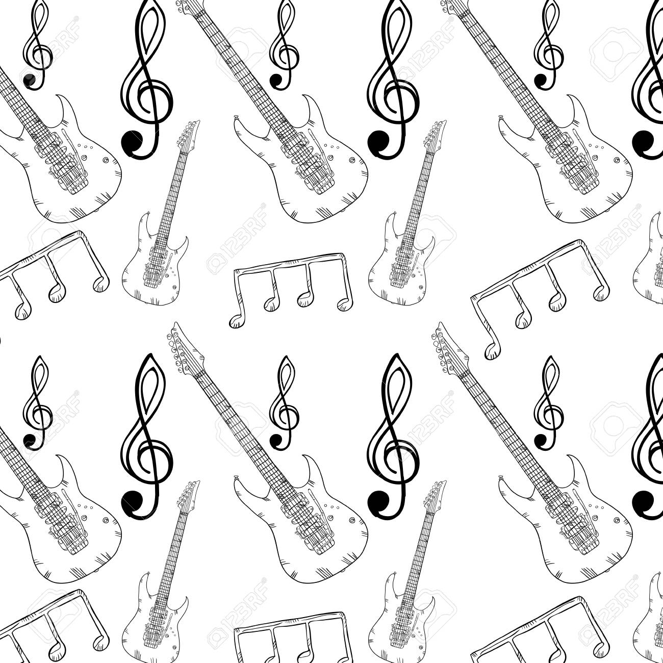 Image Of Musical Wallpaper With Music Notes And Electric Guitar Instrument