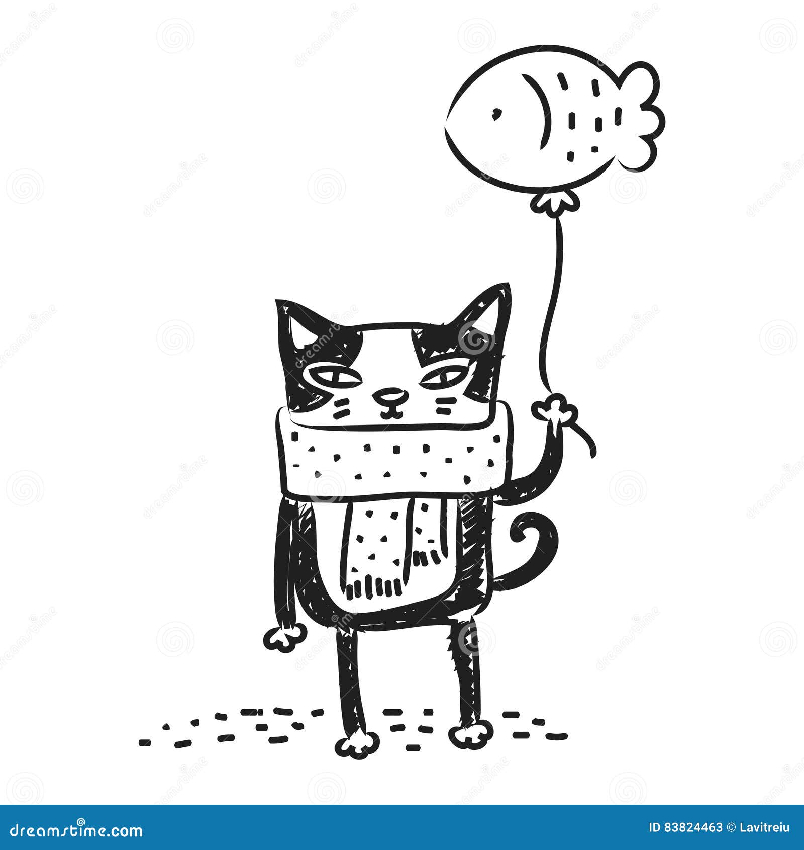 Image Of Cat Drawing Stock Vector Illustration Of Draw Scarf 83824463