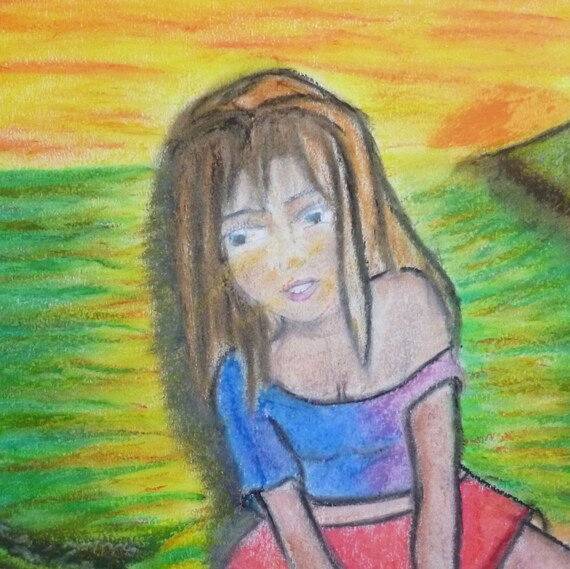 Image Of Crayon Painting Woman In The Sunset Image Of Drawing Sunset Using Colored Pen...