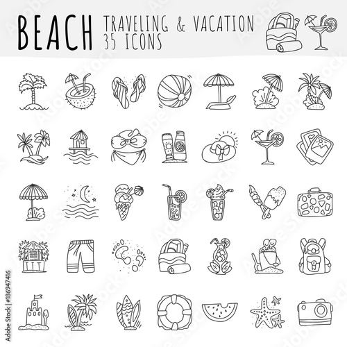 Image Of Summer Tropical Beach Icon Collection Hand Draw Icons About