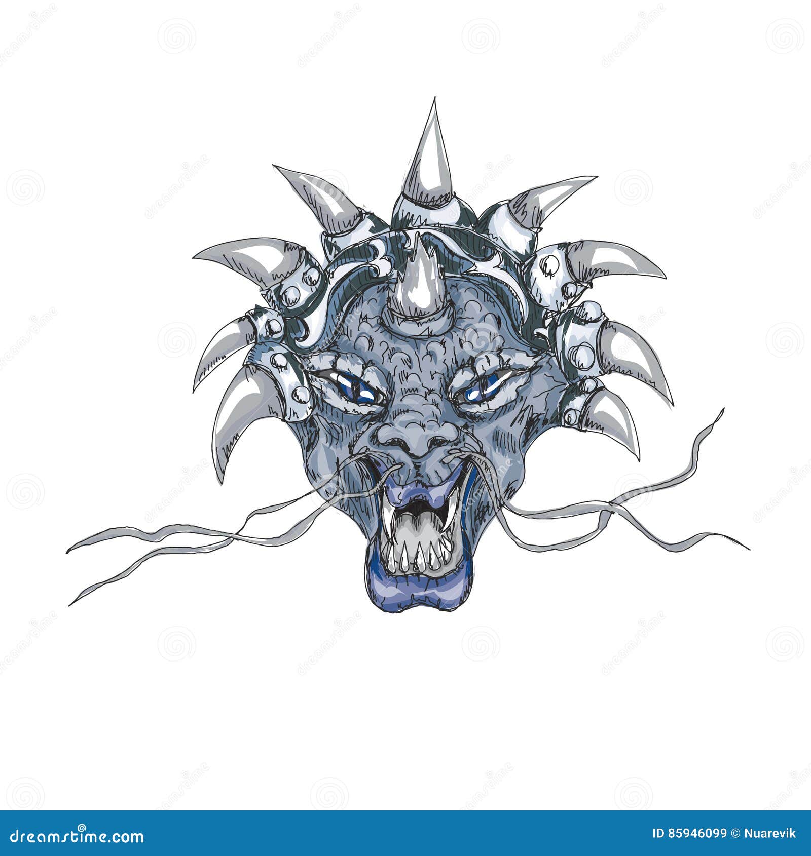 Image Of Decorative Dragon Head With Horns Print Stock Illustration
