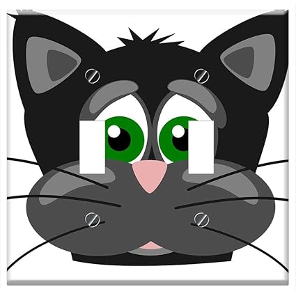 Image Of Switch Plate Double Toggle Cat Head Face Animal Kitty