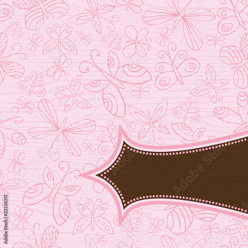 Grunge Wooden Pink Background With Pattern Of Hand Draw