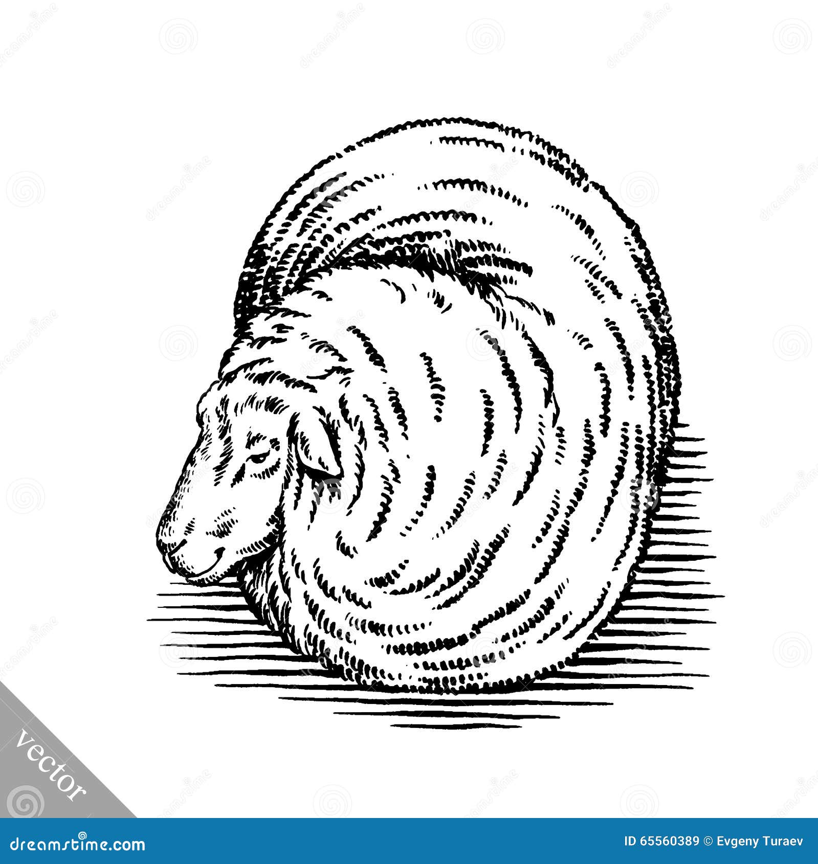 Image Of Engrave Ink Draw Sheep Illustration Stock Vector