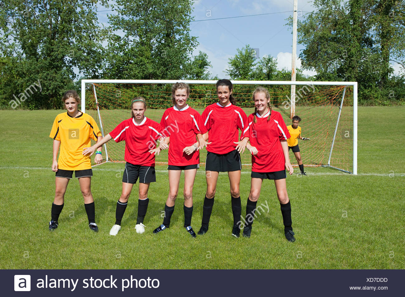 Image Of Girl Soccer Players Make Defensive Wall Stock Photo