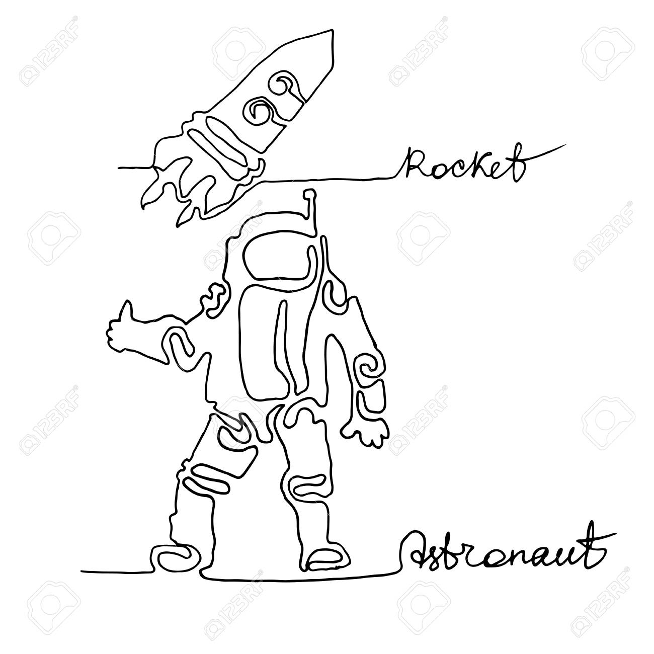 Image Of Continuous One Line Drawing Astronaut Rocket Ship Space Exploration