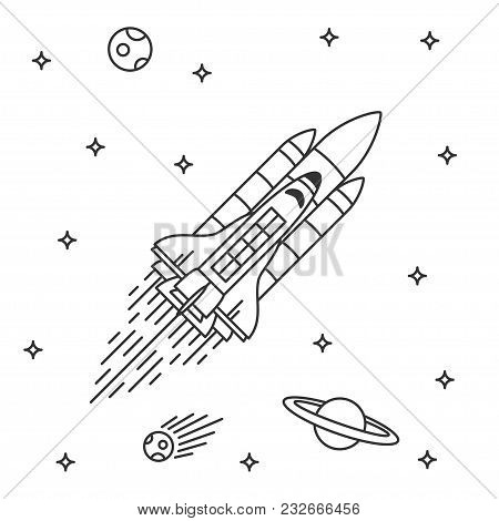 Image Of Rocket Ship Outline Drawing Isolated On White Background