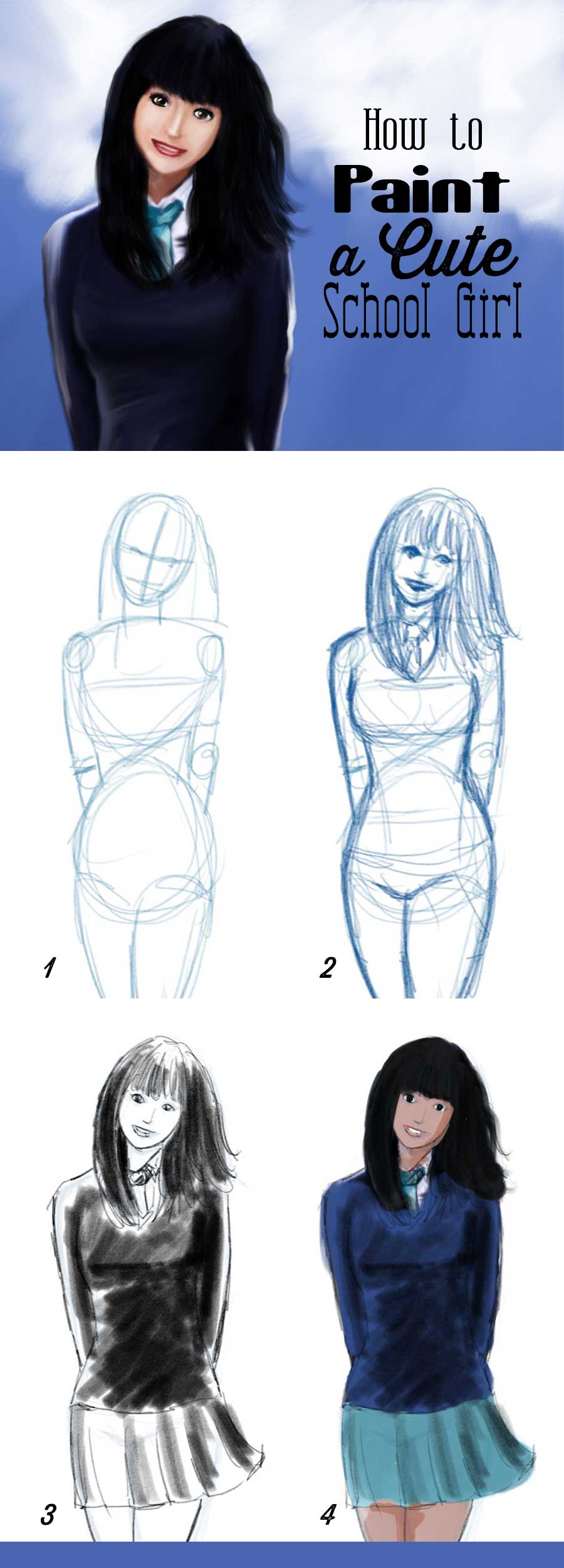 Image Of How To Draw A High School Girl Step By Step Concept Art