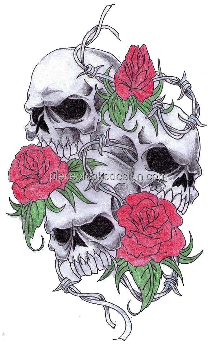 Image Of 8 Round Skulls Roses Barbed Wire Birthday Edible