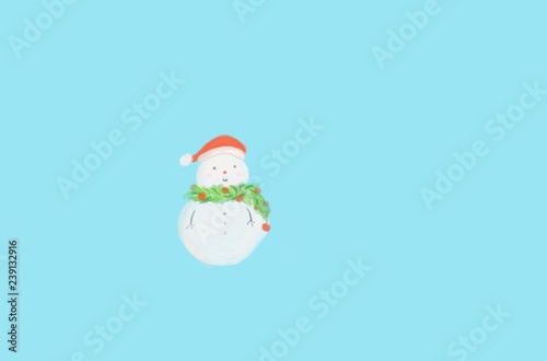 Image Of Cute Digital Hand Draw Snowman Was Decorated With Garland