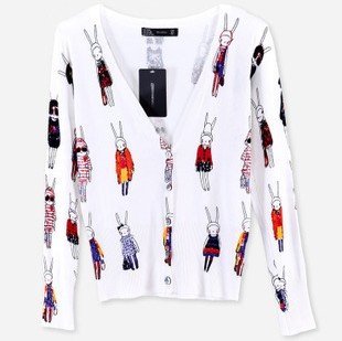 Image Of Color Drawing Print Rabbit Pattern Lady Long Sleeve Cardigan