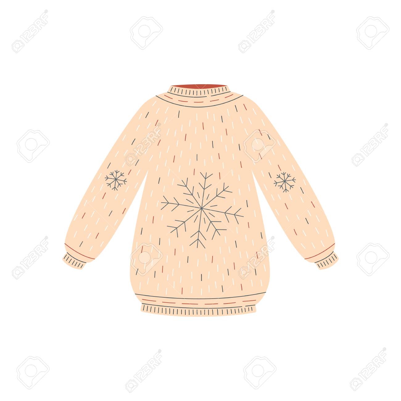 Image Of Hand Drawn Beige Christmas Sweater With Snowflake Pattern Cozy