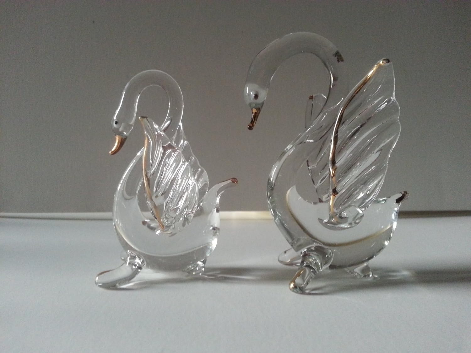 Image Of Set Of 2 Blown Glass Swan Figurine 3 0 H