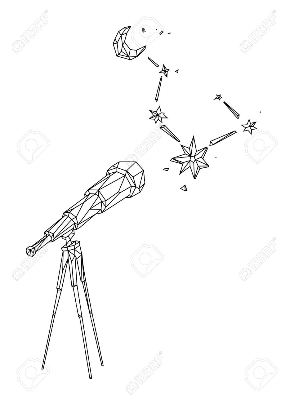 Image Of Low Poly Illustration Of A Telescope Against A Starry Sky And