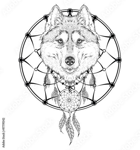 Image Of Animal Hand Drawn Illustration Wolf Indian Warrior Native
