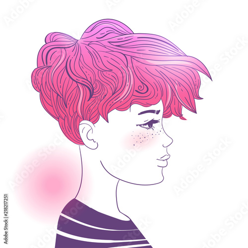 Woman With Short Hair Sketch Vector Cartoon Isolated Art