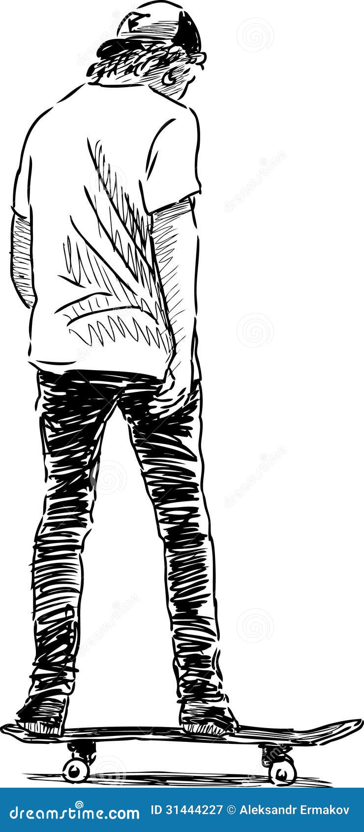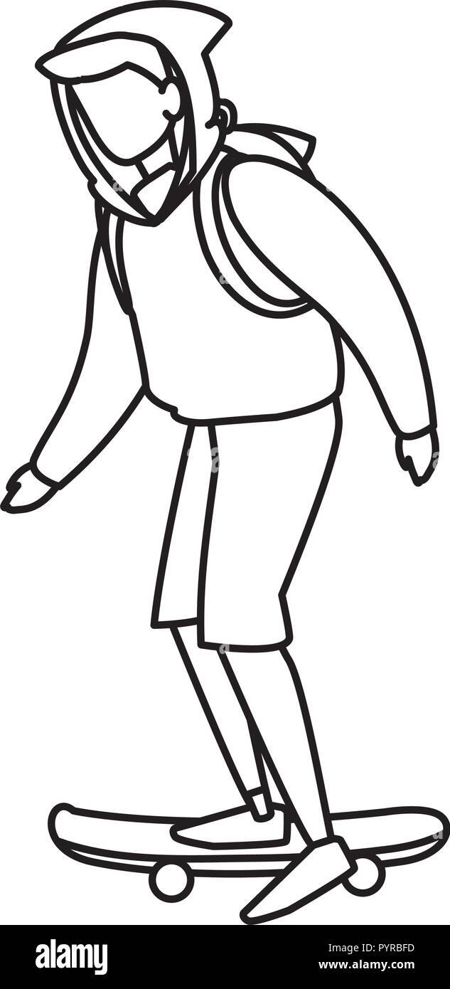 Image Of An Image Of A Man Riding A Skateboard Line Drawing Stock