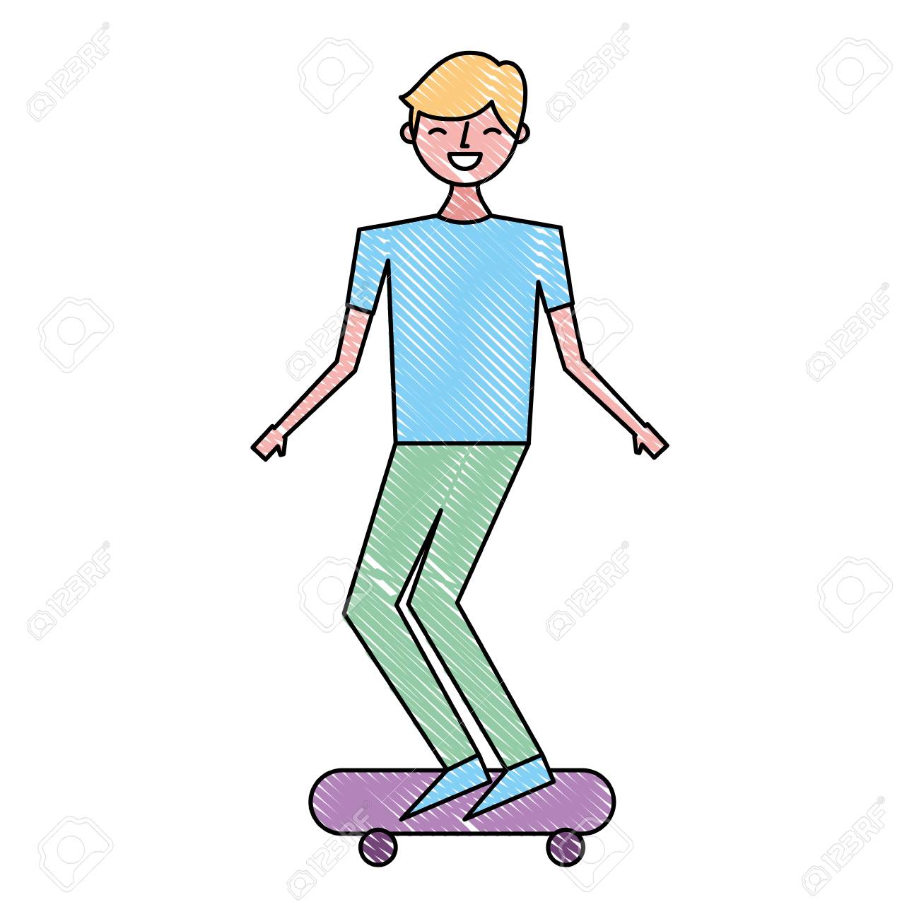 Image Of Young Man Riding On Skateboard Enjoying Vector Illustration Drawing