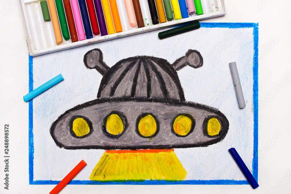 Image Of Photo Art Print Colorful Drawing Ufo Alien Spaceship