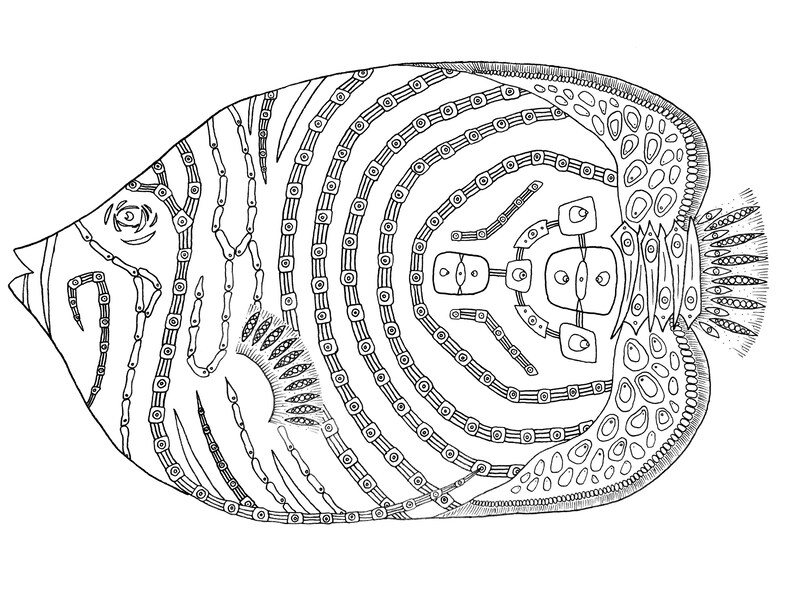 Image Of Black White Emperor Angelfish Drawing Ink Pen On White Paper Ink Drawing Original Illustration Wall Decor 8 X 10 In