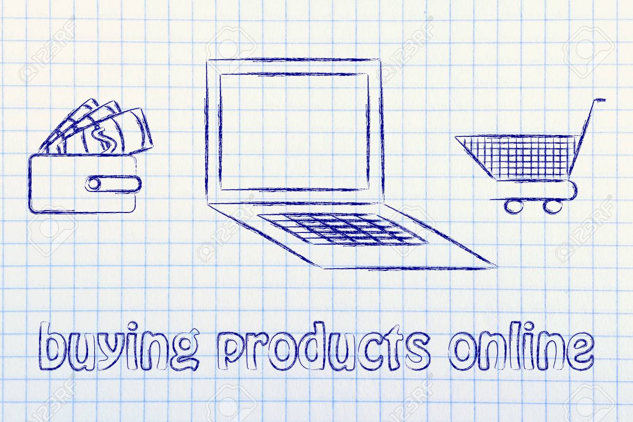 Image Of Symbols Of E Shopping And Buying Online Laptop Wallet And Shopping
