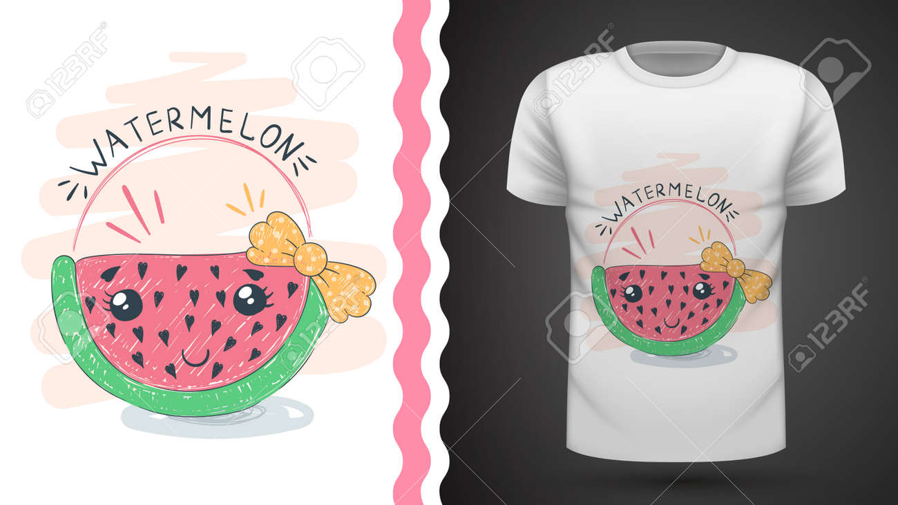 Image Of Cute Watermelon Idea For Print T Shirt Hand Draw