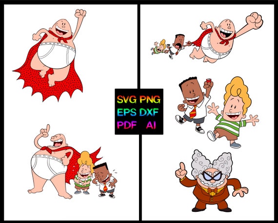 5 Captain Underpants Vector Svg Png Ai Eps Dxf Pdf Cut Files Kids Digital Instant Download Clipart Drawing Image Birthday Party Art