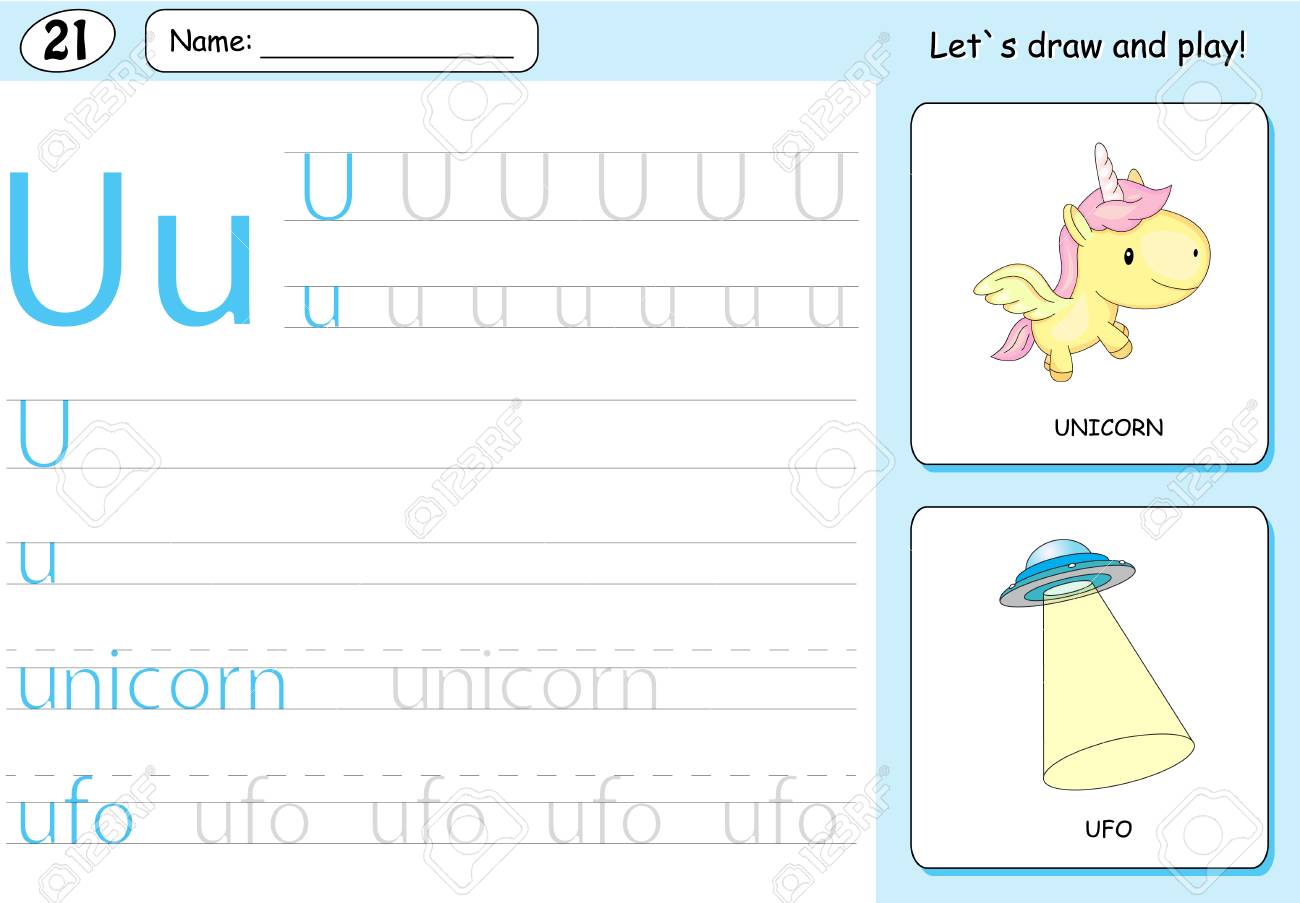 Image Of Cartoon Unicorn And Ufo Alphabet Tracing Worksheet Writing