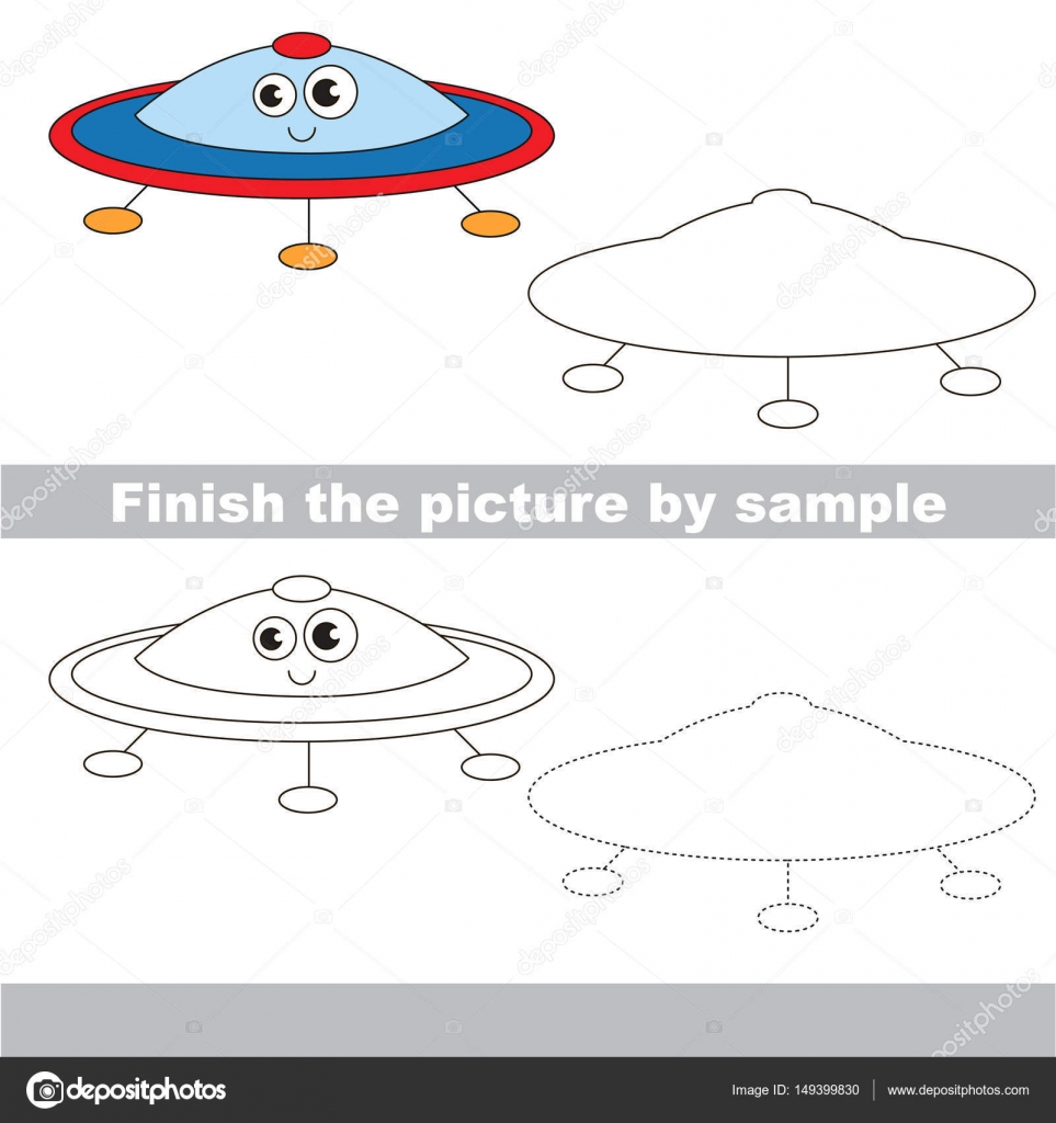 Image Of Kid Drawing Worksheet To Complete Picture By Sample Stock