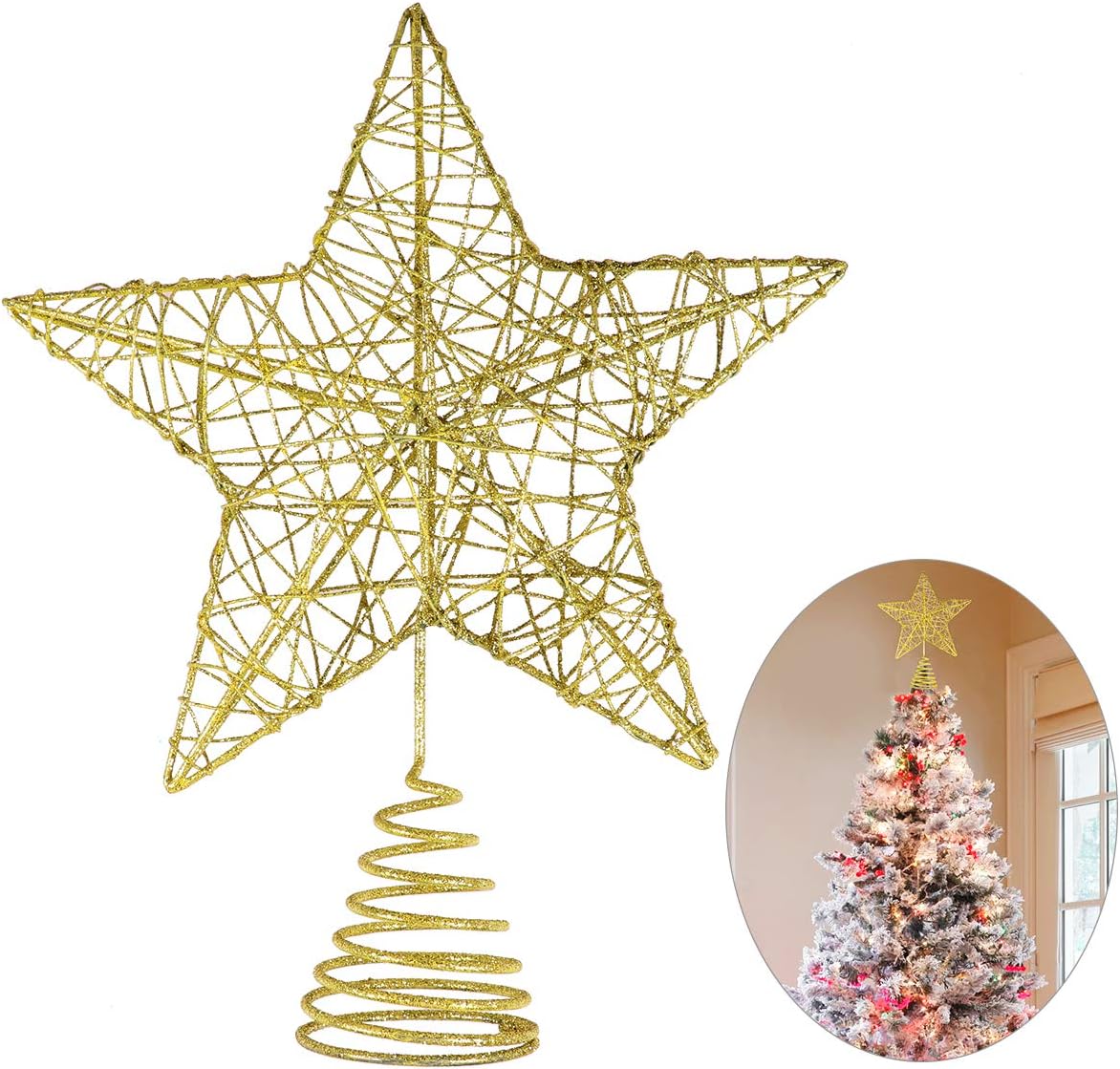 Image Of Unomor Christmas Star Tree Topper Gold Glittered Metal Hallow Tree Star Unique Design 8 Inches Size Not Included Base Fit For General Size