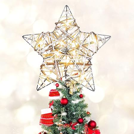 Image Of Maoyue Christmas Tree Topper Rattan Lighted Tree Topper Battery Operated Rustic Star Tree Topper Built In 10 Led Lights For Christmas Tree Decorations