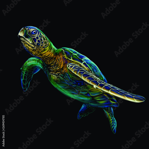Image Of Watercolor Hand Drawn Sea Turtle Realistic Illustration