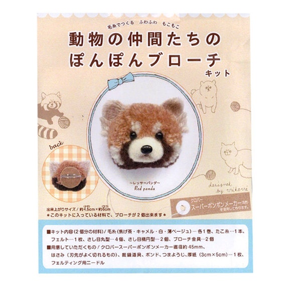 Image Of A Kit To Make Pom Pom Red Panda Face Brooches Desgined By Trikotri