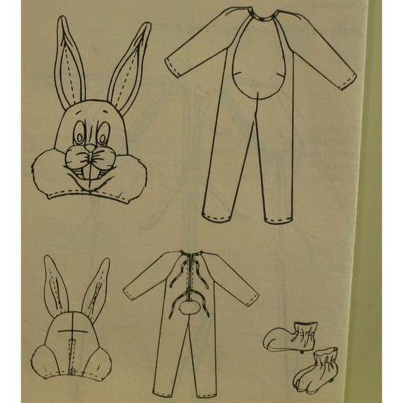 Child Bugs Bunny Costume Pattern Warner Brothers Cartoon Character Mask Head Jumpsuit Mccalls 2744 P942 Uncut Size 6 8 Chest 25 27