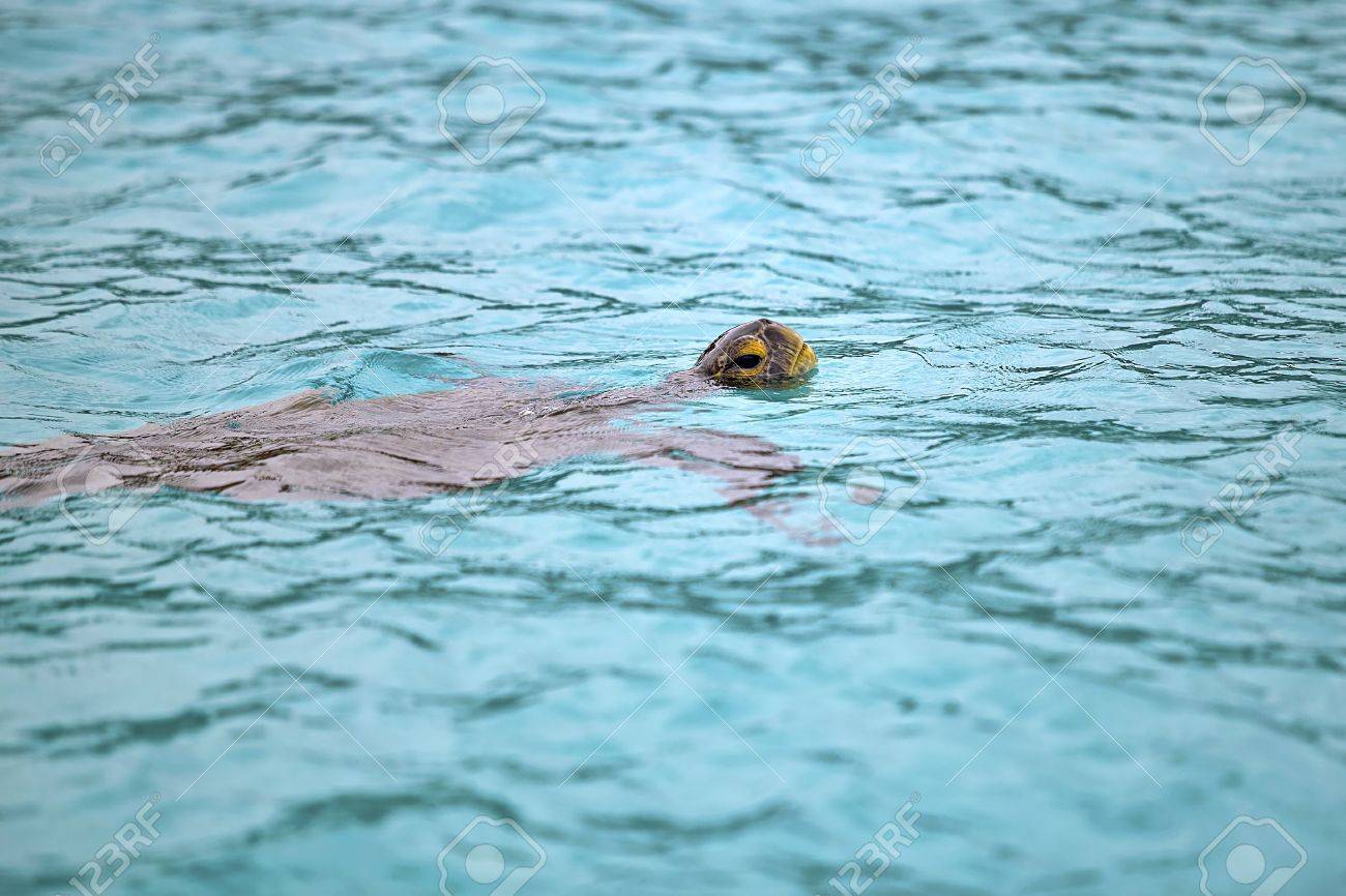 Image Of Green Sea Turtle Lifting It S Head Above Water To Draw Air
