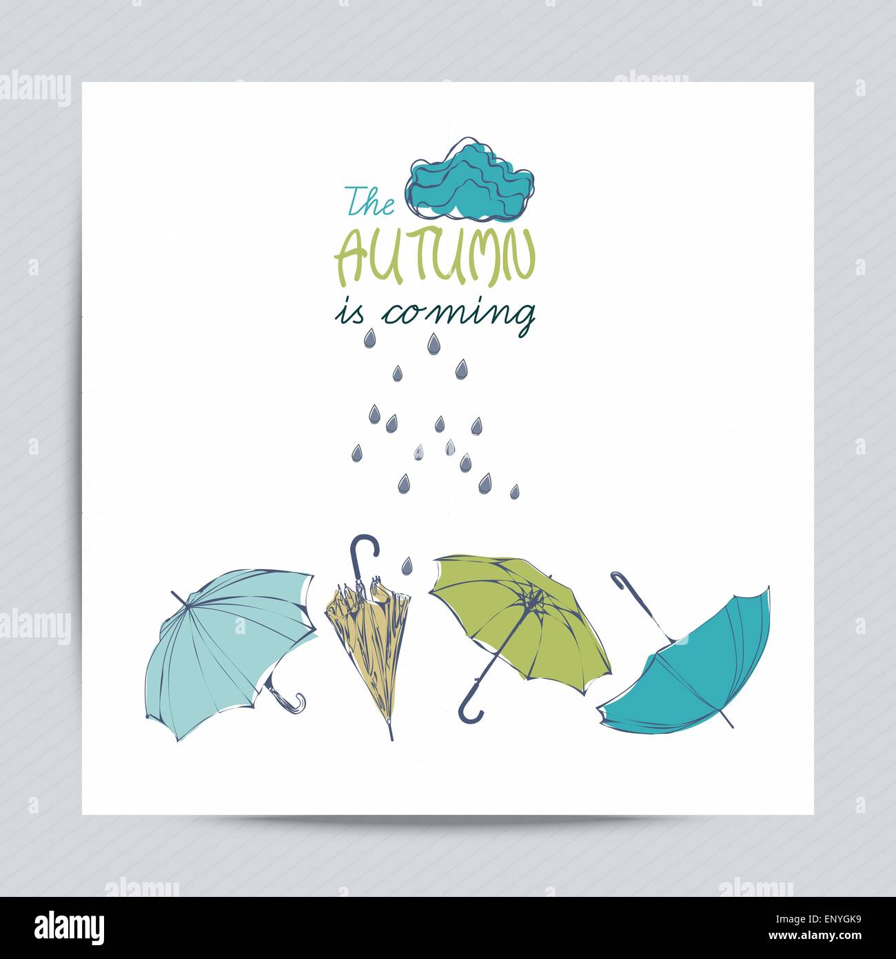 Image Of Vector Autumn Doodles Card Hand Draw Umbrellas And Leafs