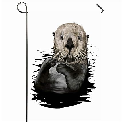Image Of Ahawoso Outdoor Garden Flags 12 X18 Inch Top Brown Drawing Sea Otter Nature Fur Painting Aquatic Character Cheerful Cute Design Friendly Vertical