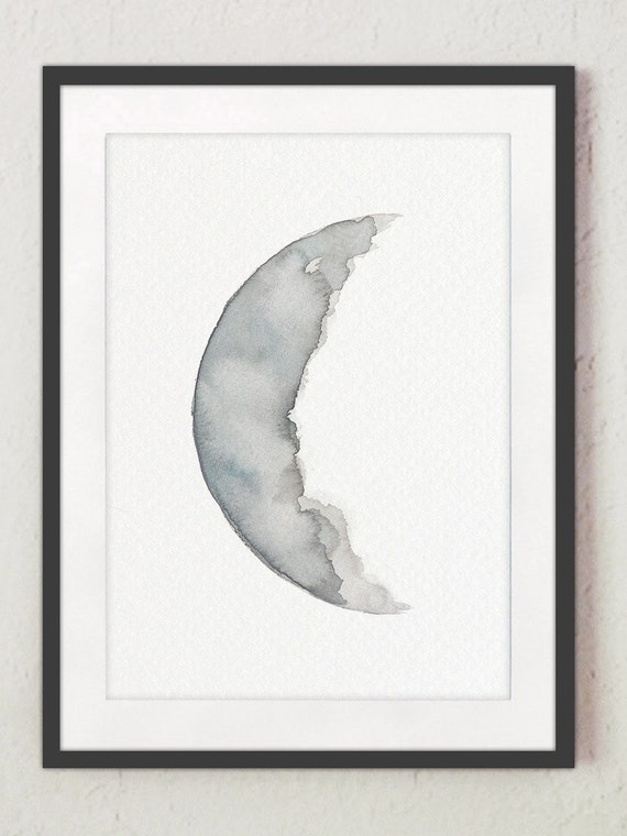 Image Of Waxing Crescent Moon Phase Drawing Space Solar System Illustration Waning Moon Phases Art Print Abstract Watercolour Painting Wall Decor