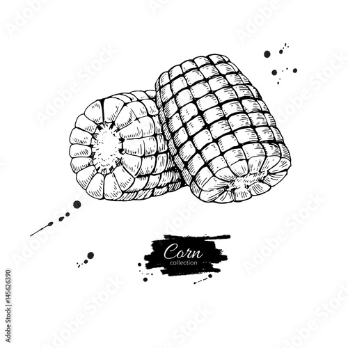 Corn Cob Hand Drawn Vector Illustration Detailed Vegetarian