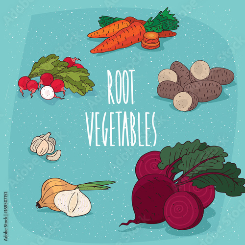 Image Of Set Of Isolated Food Products Edible Plant Roots Such As