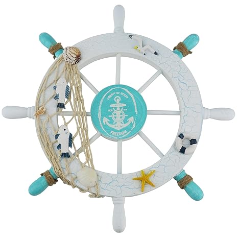 Image Of Ogrmar Mediterranean Nautical Wooden Boat Ship Steering Wheel Handcrafted Wooden Ship Wheel Pirate Decor Wall And Door Hanging Ornament Plaque White